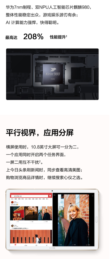 商品名称:华为 HUAWEI M6 (麒麟980/4GB/64GB/10.8英寸) 平板电脑 香槟金 WIFI版