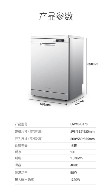 商品名称:卡萨帝 CASARTE 天鼎系列 CW15-B178 洗碗机 15套 独立式