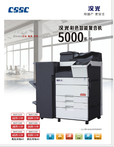 商品名称:汉光 BMFC5450(双面器/双面自动输稿器/有线网络打印/1100页/工作台/1年)复印机