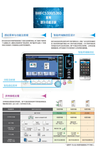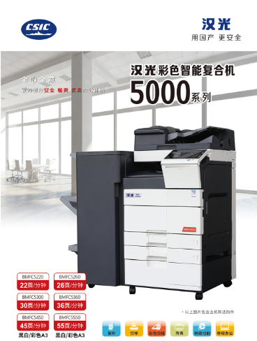 商品名称:汉光 BMFC5300(双面器/双面自动输稿器/网络打印卡/1100页/选配纸库/排纸处理器/1年)复印机