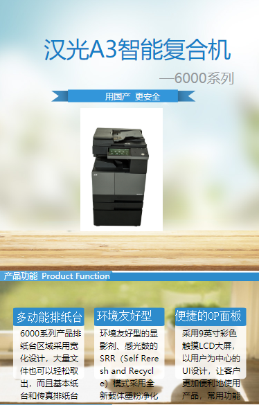 商品名称:汉光 BMF6260(双面器/双面同步扫描输稿器/网络打印卡/1100页)复印机