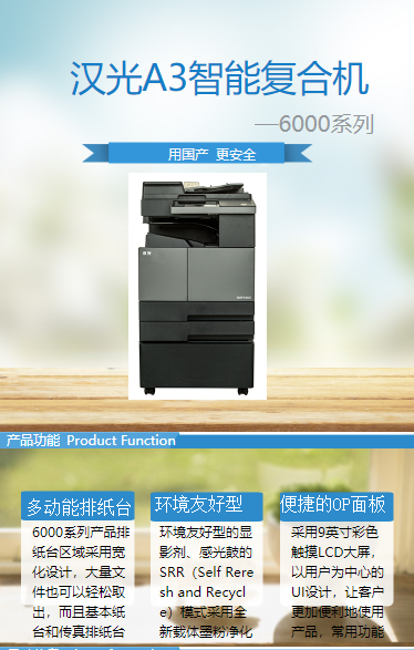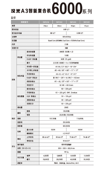 商品名称:汉光 BMF6400 (双面器/双面自动输稿器/网络打印机卡/1100页/2年)复印机