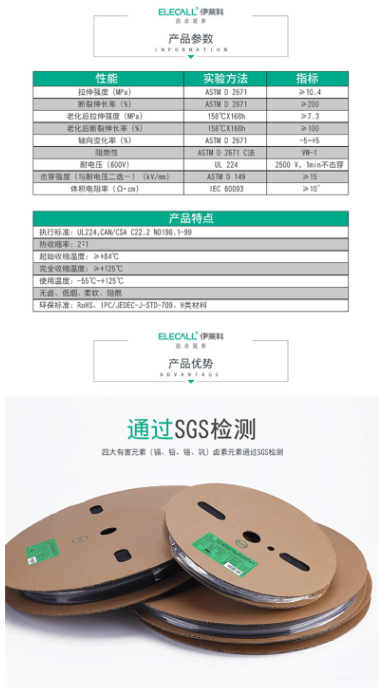 商品名称:伊莱科 ELECALL HST040BS 热缩套管 Φ4 黑色 200M