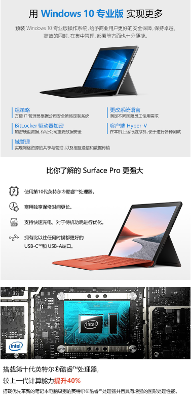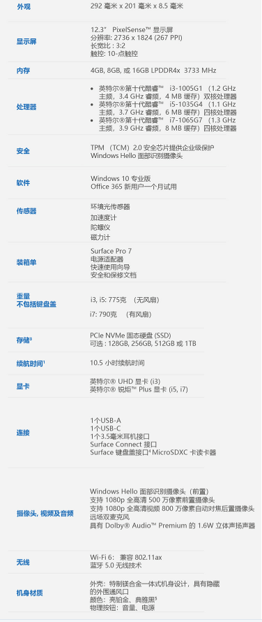 商品名称:微软 MICROSOFT 商用 全新 SURFACE PRO 7专业版 平板电脑 12.3英寸(I5 8G 256G 典雅黑/黑色键盘 联)