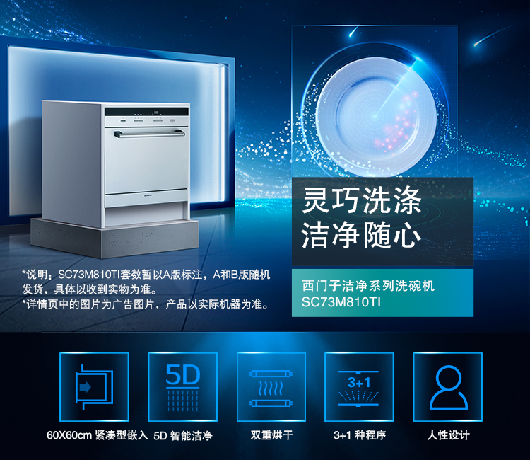 商品名称:西门子 SIEMENS 8套原装进口除菌烘干嵌入式家用洗碗机SC73M810TI