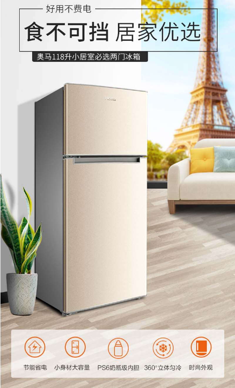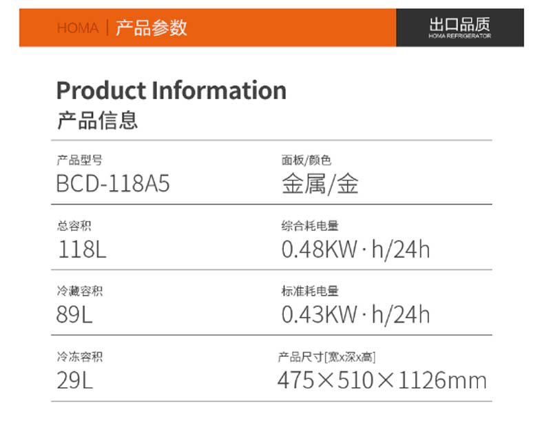 商品名称:奥马 HOMA BCD-118A5 118升 定频 机械控温 冰箱 金色