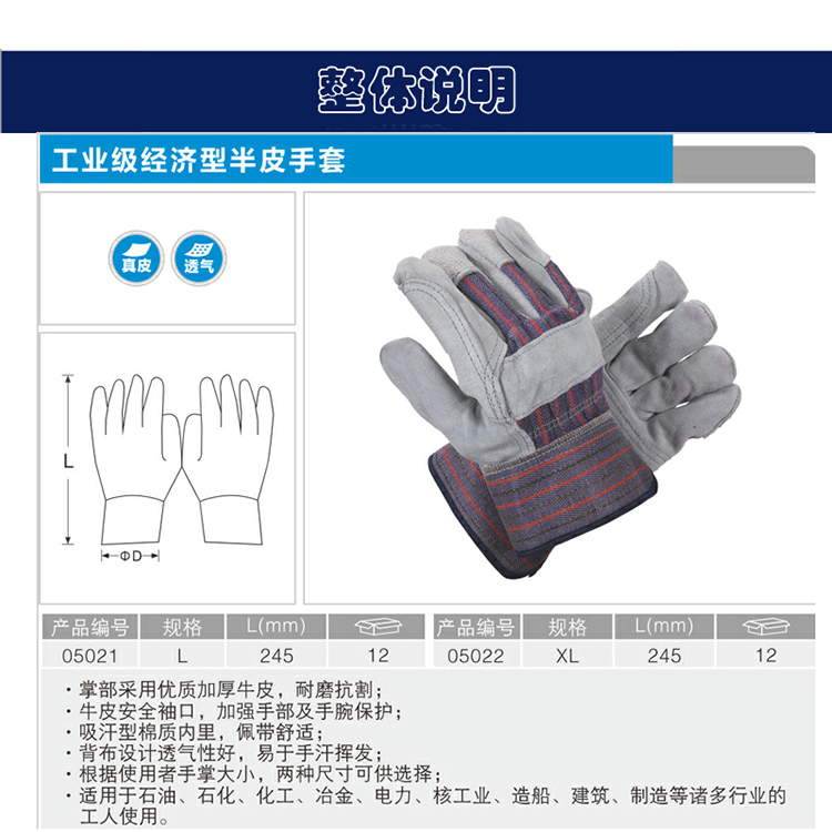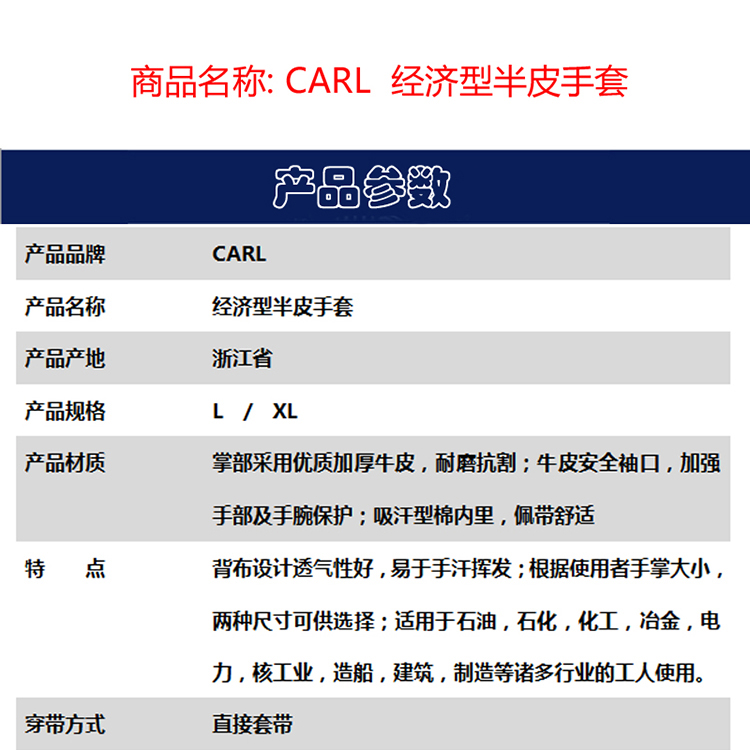 商品名称:国产 CARL KL5021CB7 经济型半皮手套L