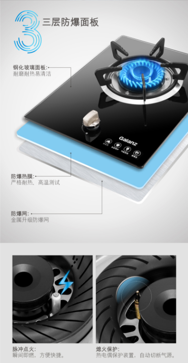 商品名称:格兰仕 GALANZ JZ T-G3603 单眼燃气灶钢化玻璃面板台嵌两用天然气