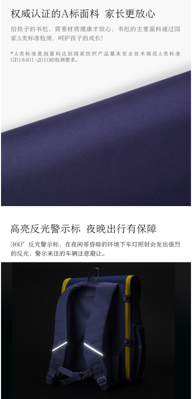 商品名称:京东京造 小学生书包 1-4年级男女孩 藏青太阳狮