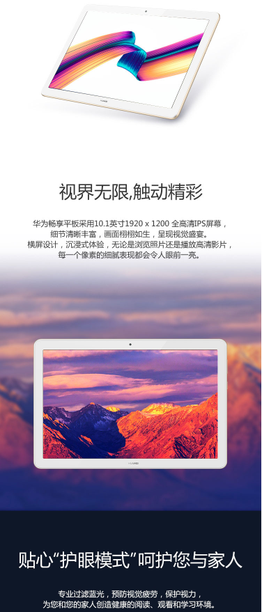 商品名称:华为 HUAWEI 华为畅享平板 (麒麟659/4GB/64GB/10.1英寸) 平板电脑 香槟金 WIFI版