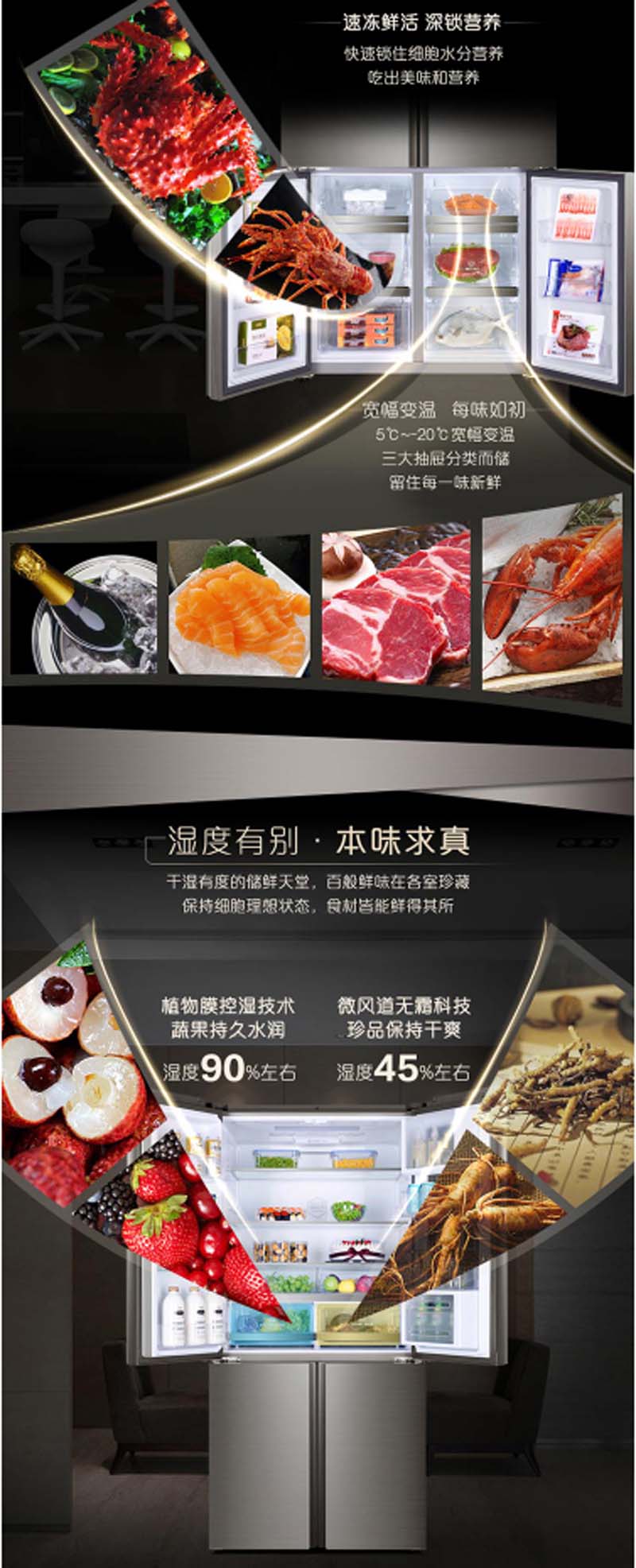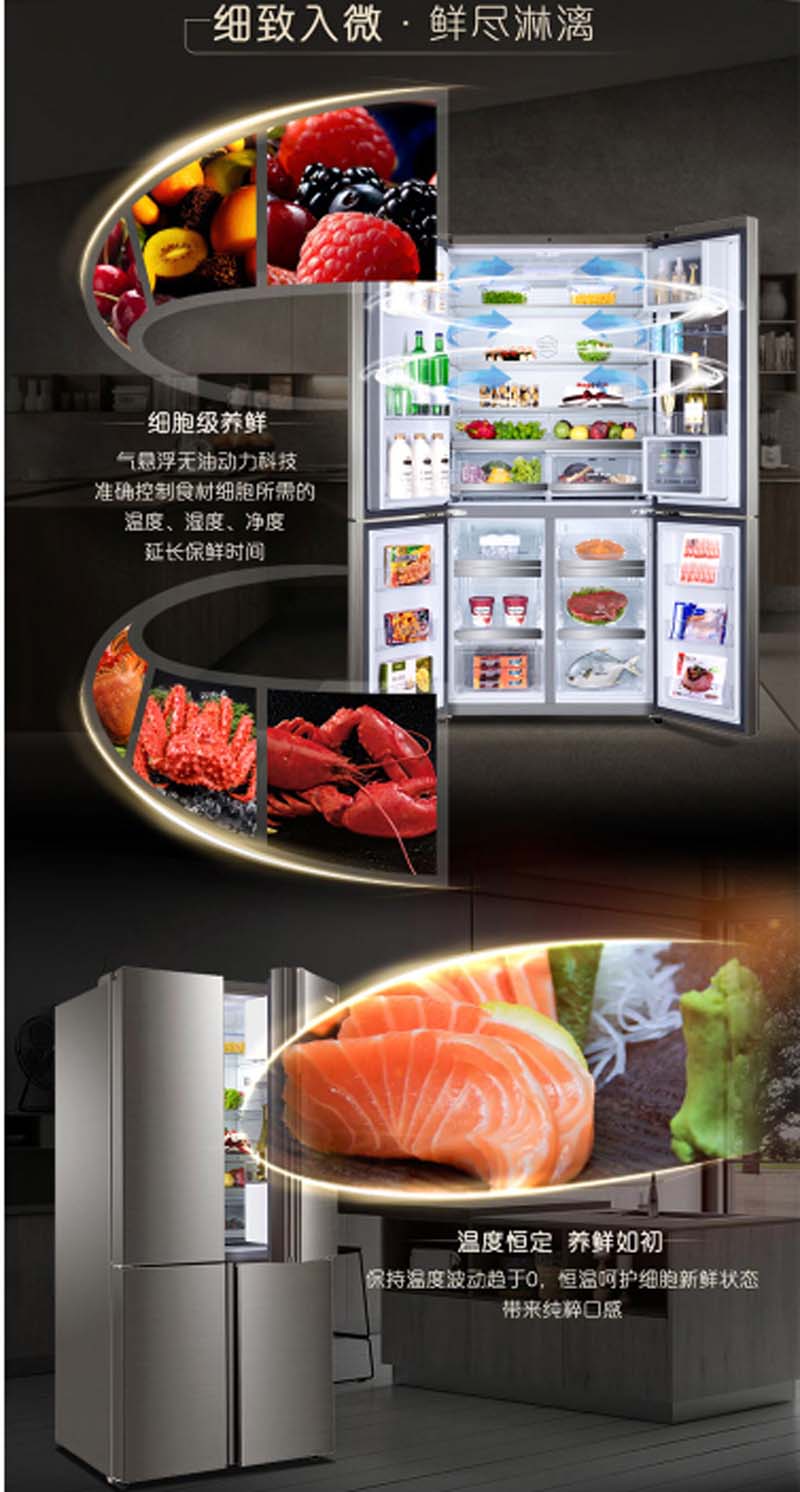 商品名称:卡萨帝 CASARTE BCD-631WBCSU1631升变频风冷无霜多门冰箱气悬浮无油细胞级养鲜干湿分储钛金色