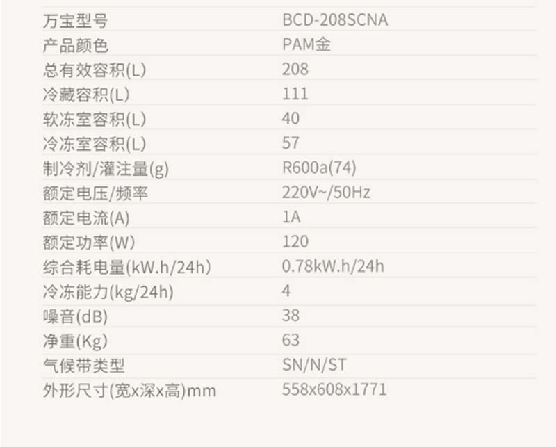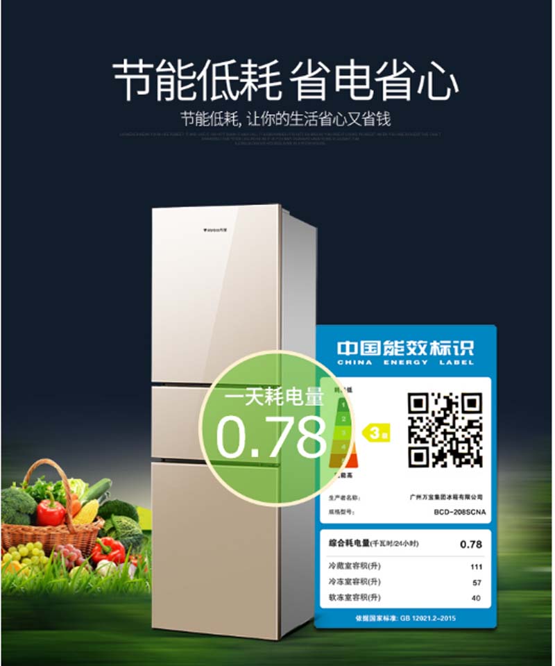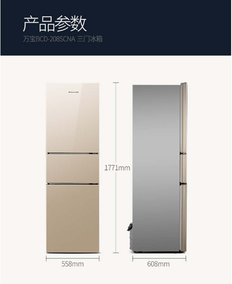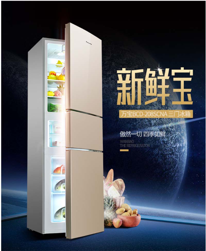 商品名称:万宝 WANBAO 208升三门冰箱360°立体制冷静音节能BCD-208SCNA