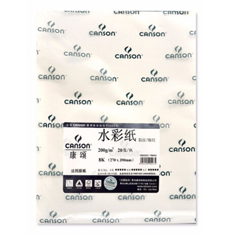 康颂 CANSON 水彩纸200G粗细双面纹理美术绘画纸270*390(8K)20张