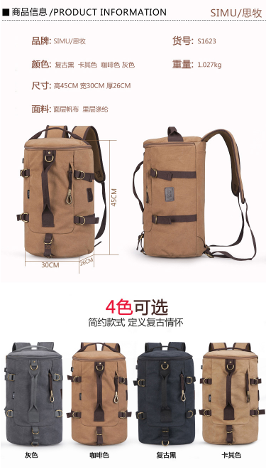 商品名称:思牧 SIMU 1623 双肩背包 黑色
