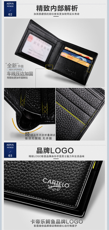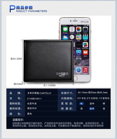 商品名称:卡帝乐鳄鱼 CARTELO C146B10011 男士 钱包 短款 敞口 黑色