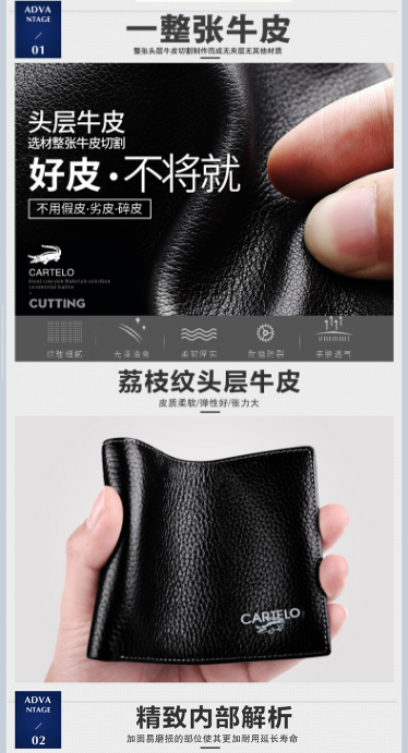 卡帝乐鳄鱼 CARTELO C146B10011 男士 钱包 短款 敞口 黑色