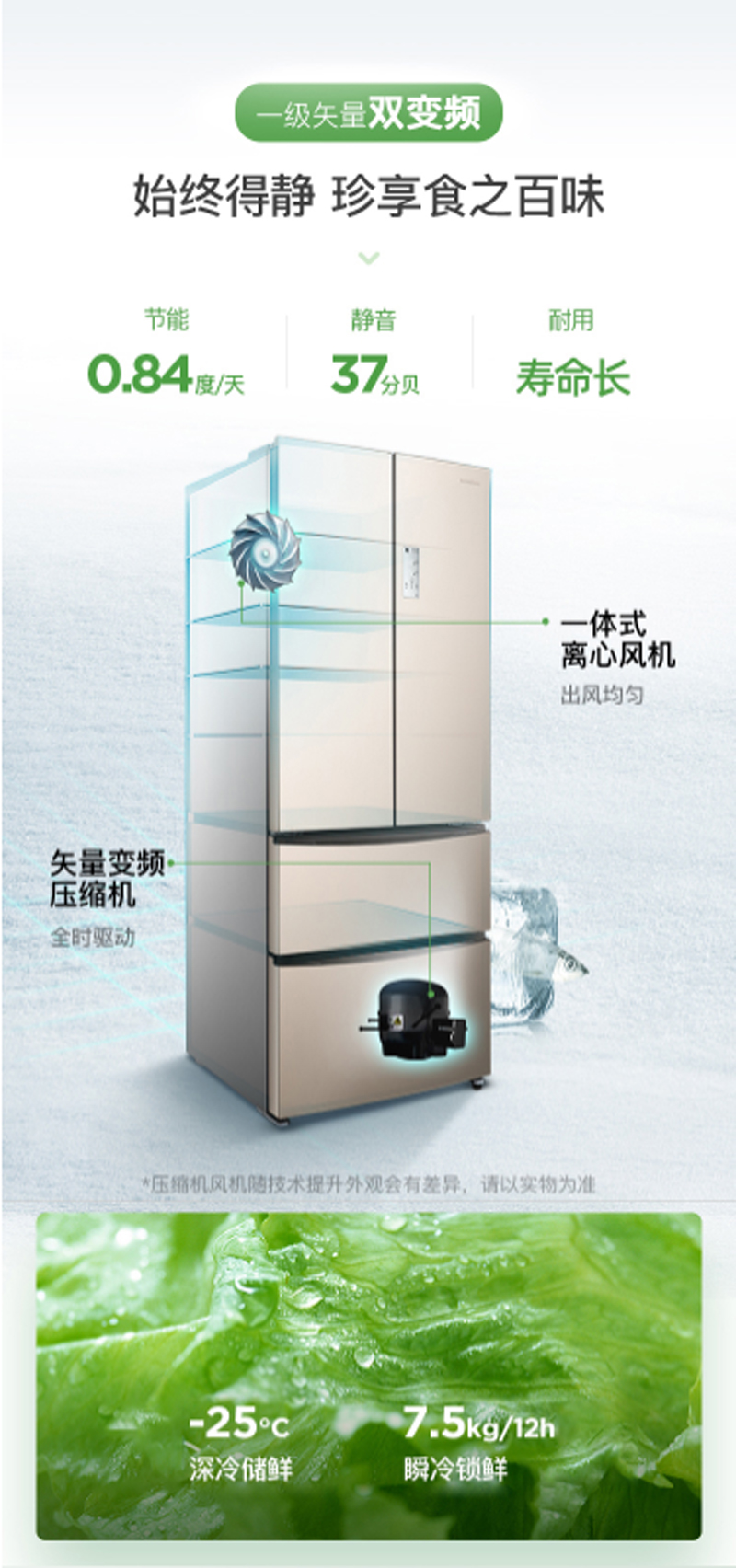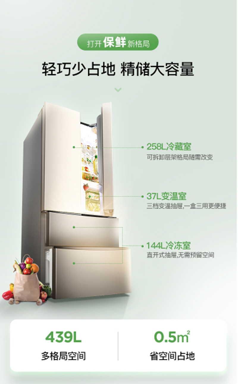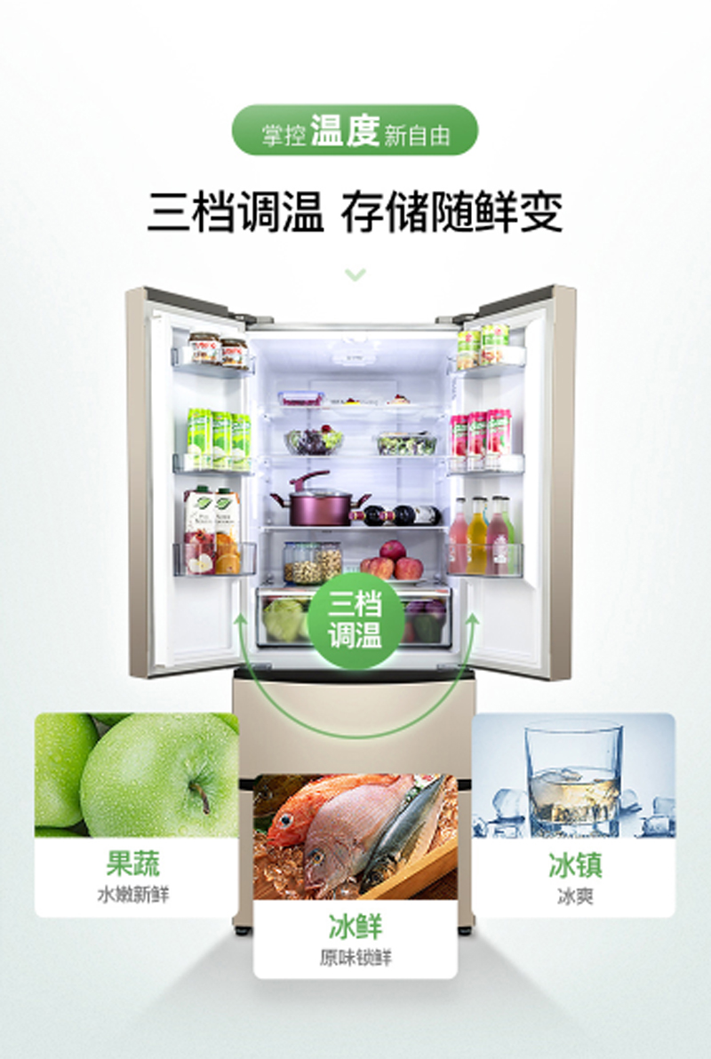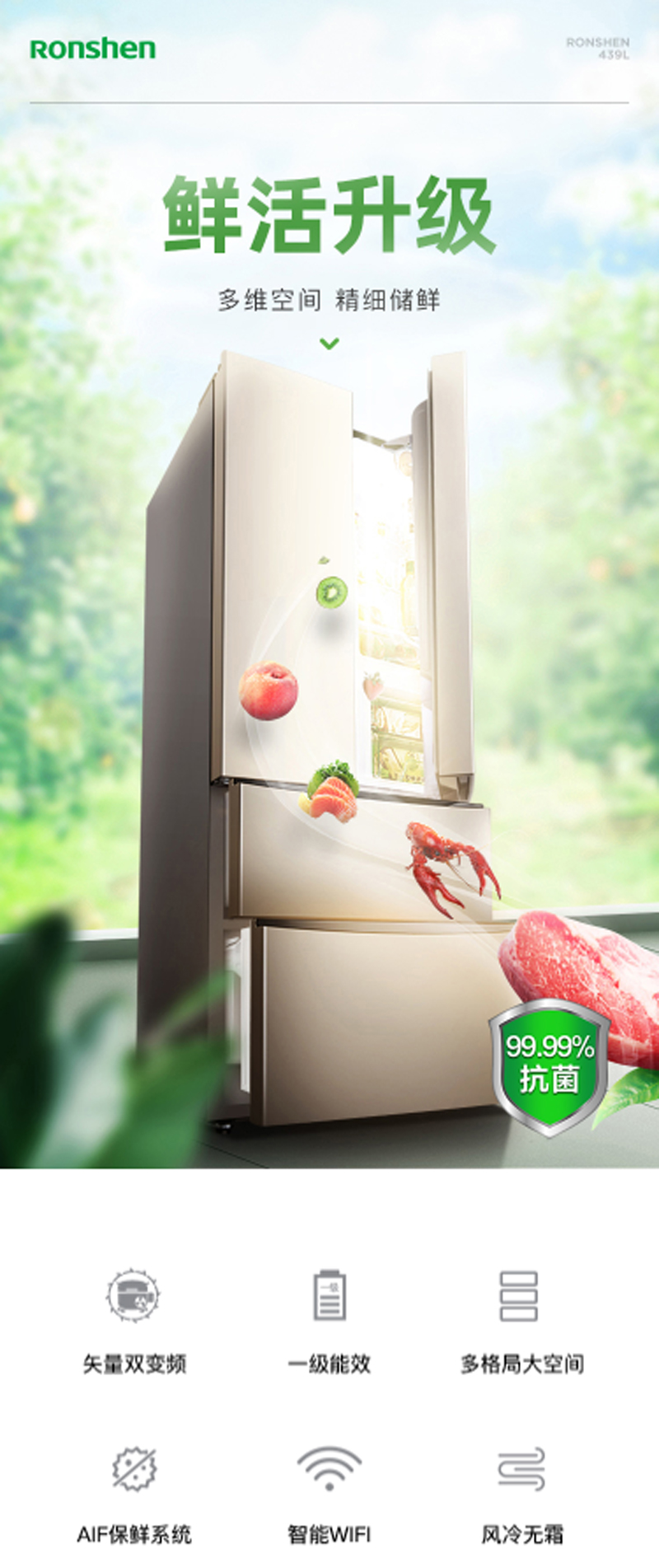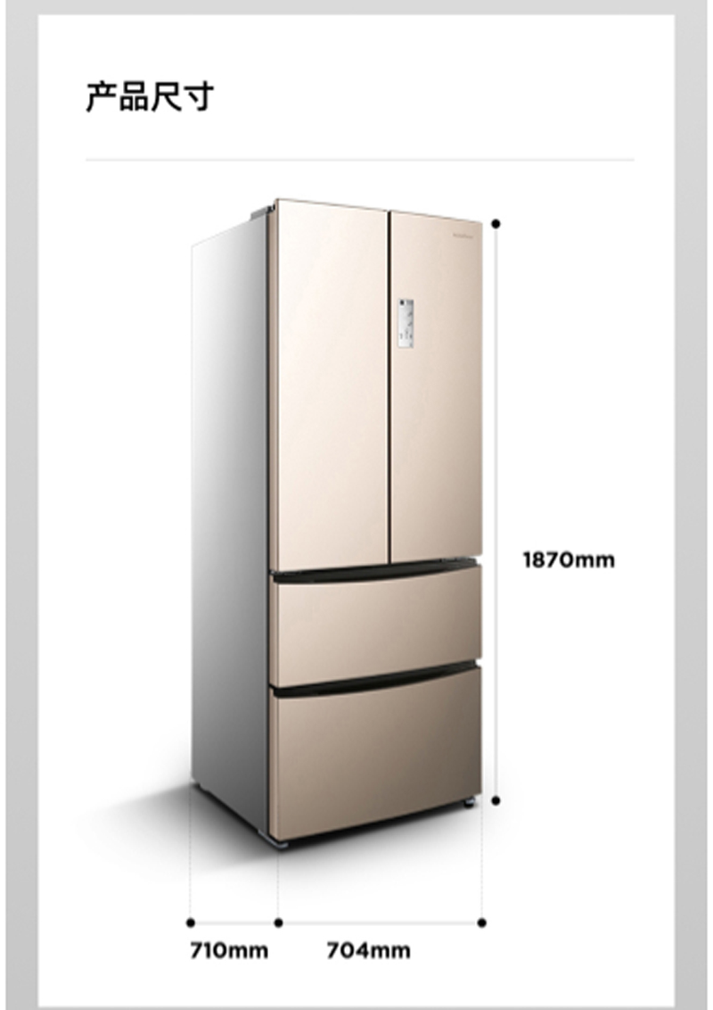 商品名称:容声 RONSHEN 439升多门冰箱智能WIFI变频一级能效风冷无霜抑菌除味钛空金BCD-439WD11MPA