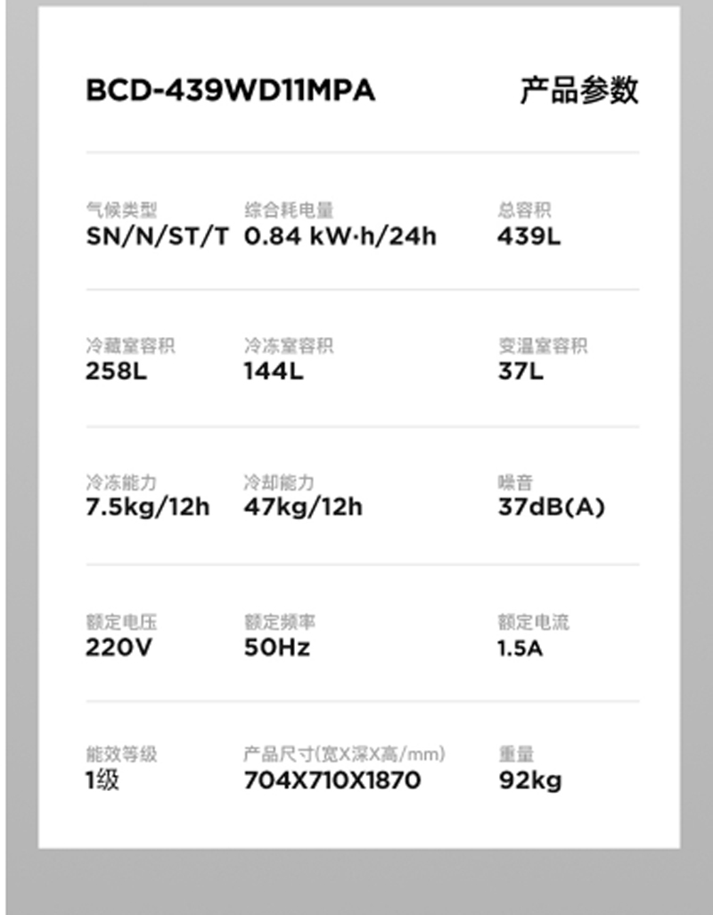 型号:BCD-439WD11MPA