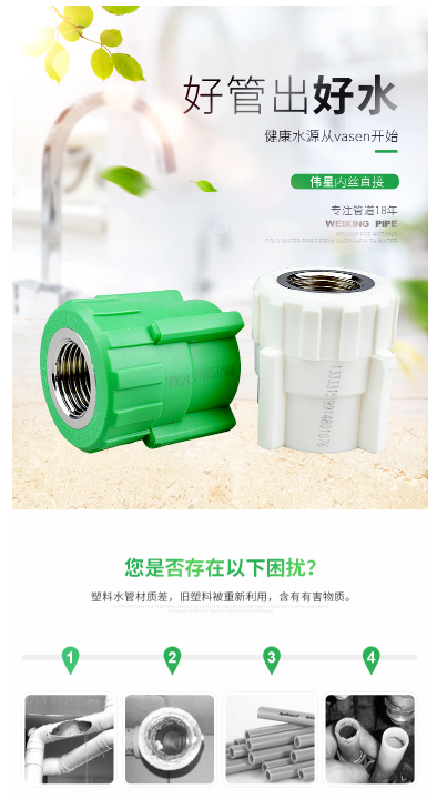 商品名称:伟星 PPR水管 内丝直接25/6分×1/2 白色 (1个)