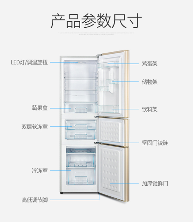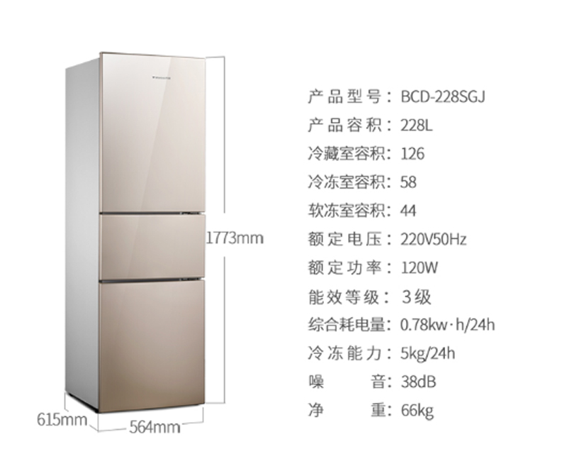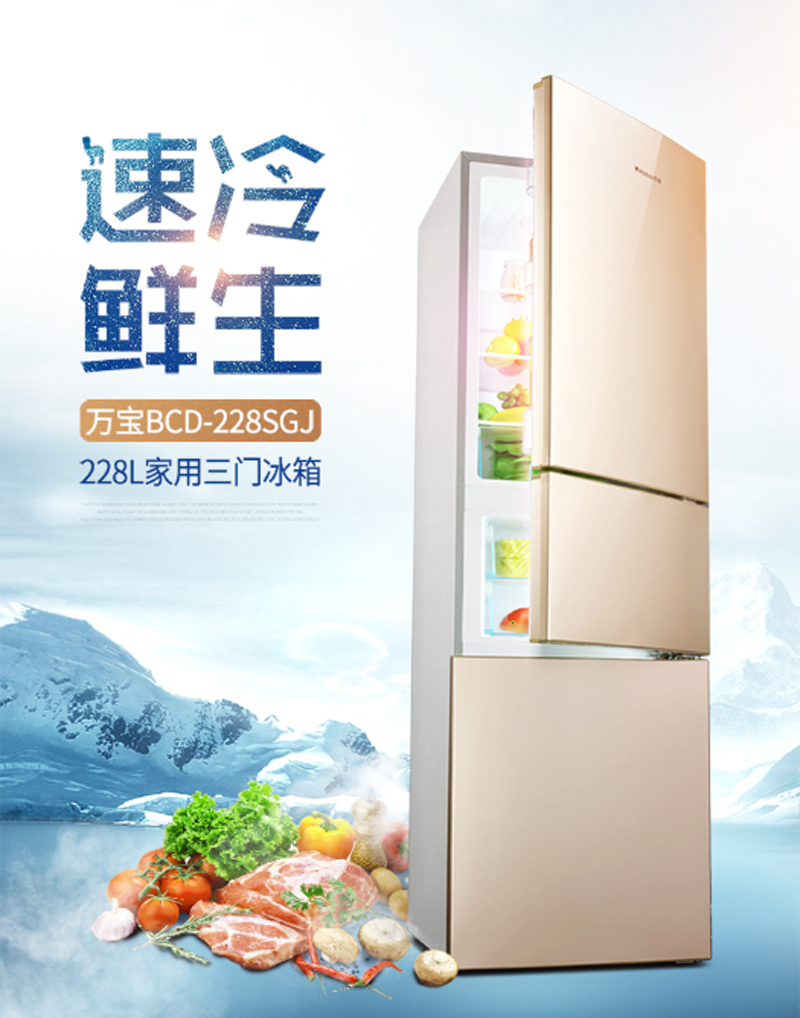 商品名称:万宝 WANBAO 228升三温三门冰箱HIPS环保内胆BCD-228SGJ