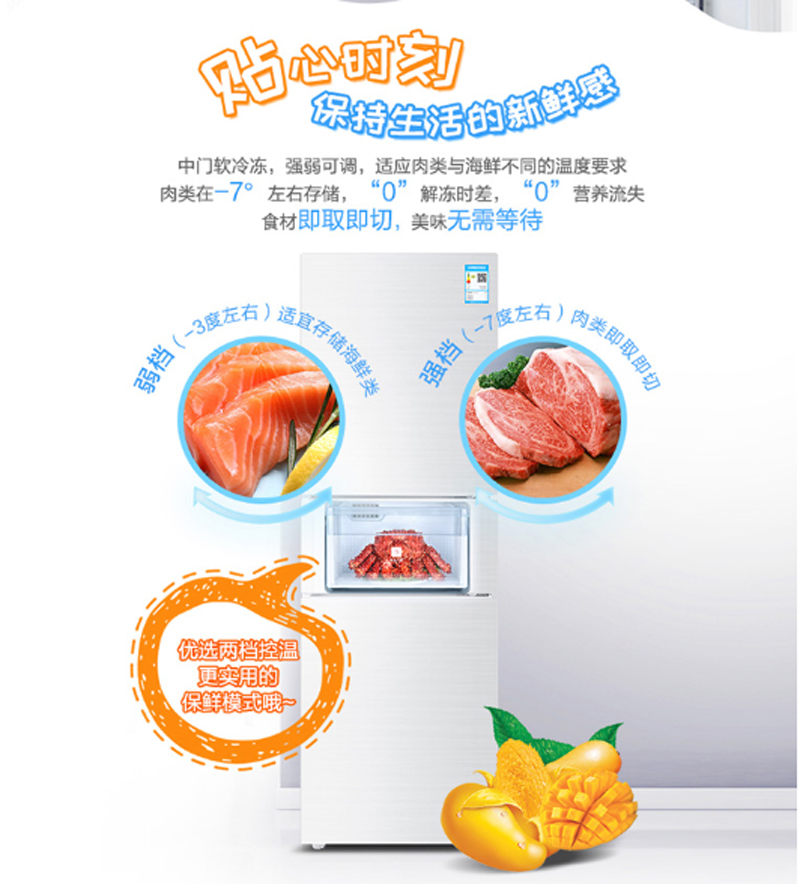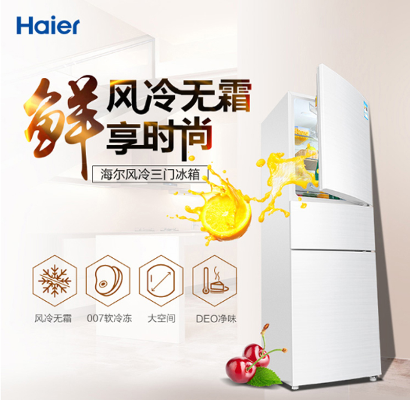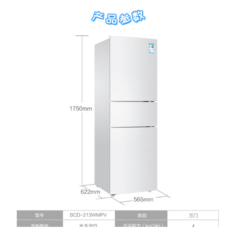 商品名称:海尔 HAIER BCD-213WMPV213升风冷无霜三门冰箱DEO净味保鲜中门-7度软冷冻白色水玉汐
