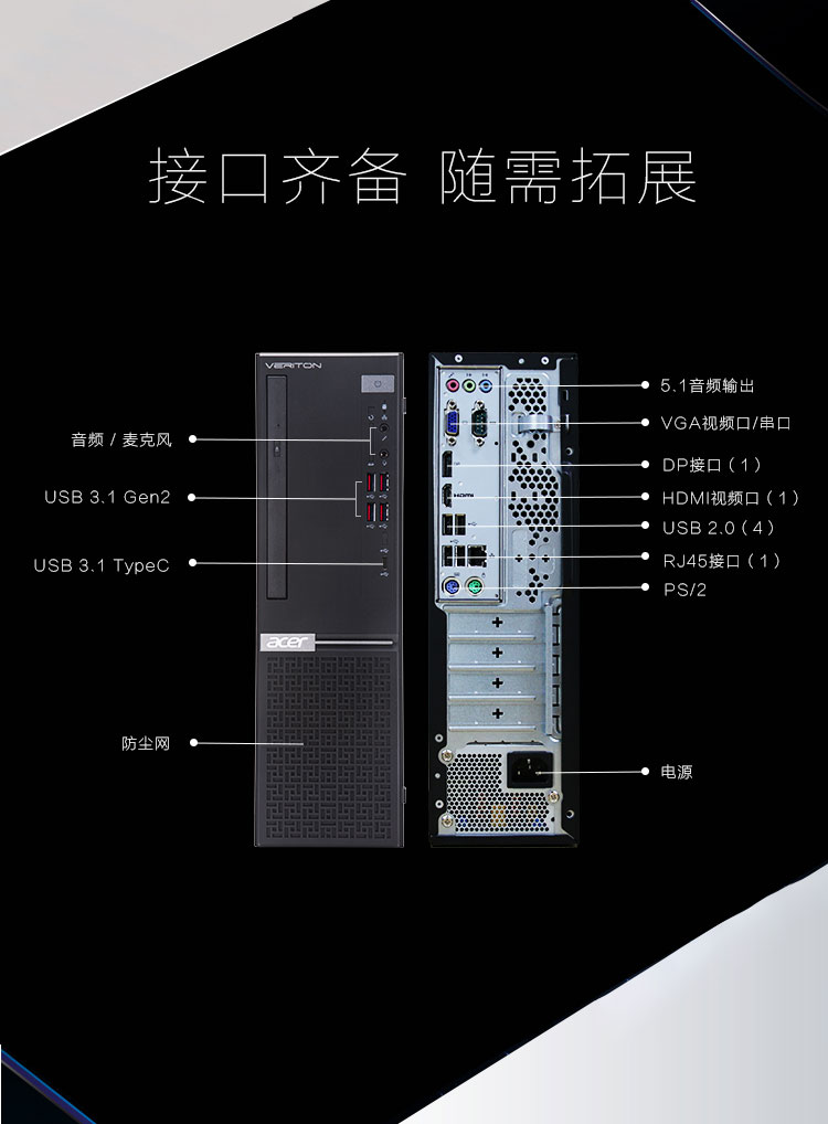 宏碁 ACER B650(I5-8400/8GB/1TB/1GB独显/WIN10HB/19英寸)台式机