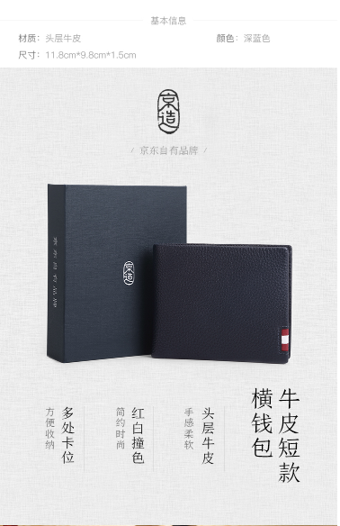 商品名称:京东京造 横款 男士 钱包 短款 敞口 深蓝色