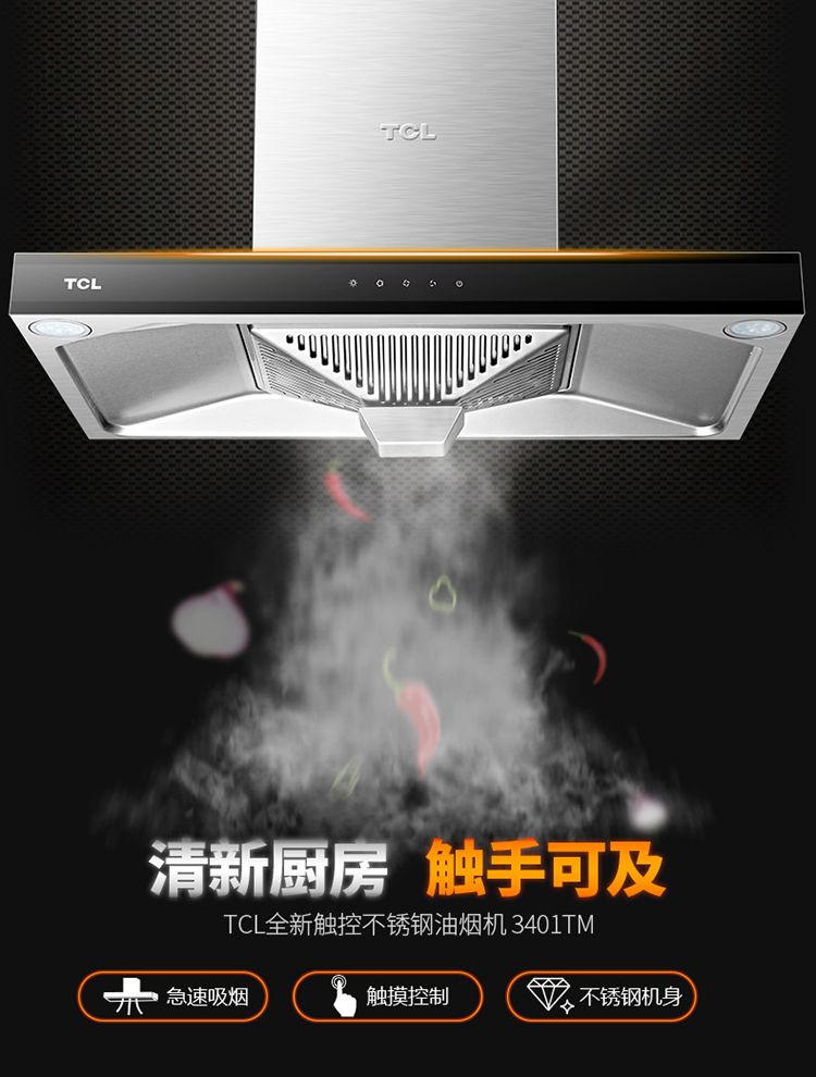 商品名称:TCL 大风力 欧式抽油烟机灶具套装 天然气 3401TM+5401B