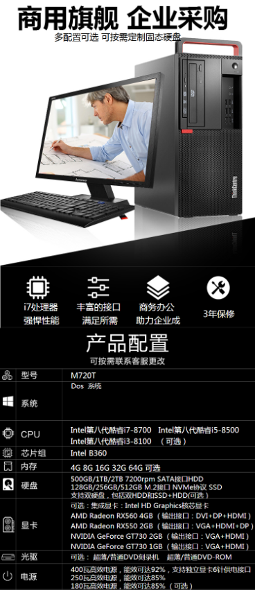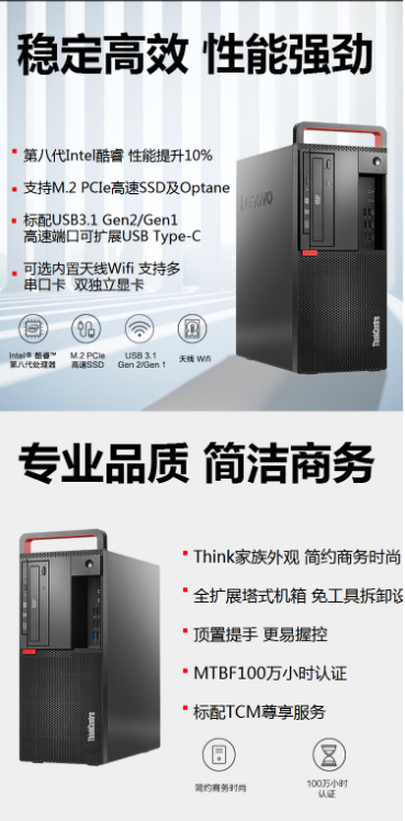 商品名称:THINKCENTRE M720(I5-9500/8GB/1TB+256GB SSD/2GB独显/WIN10HB/仅主机)台式机