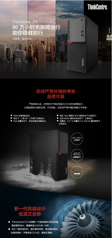 商品名称:THINKCENTRE E75 18CD(I5-7400/4GB/1TB/2GB独显/WIN10HB/21英寸)台式机