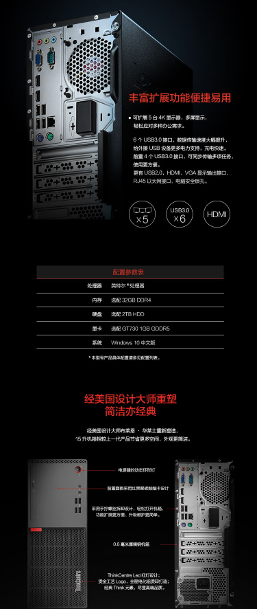 THINKCENTRE E75 18CD(I5-7400/4GB/1TB/2GB独显/WIN10HB/21英寸)台式机