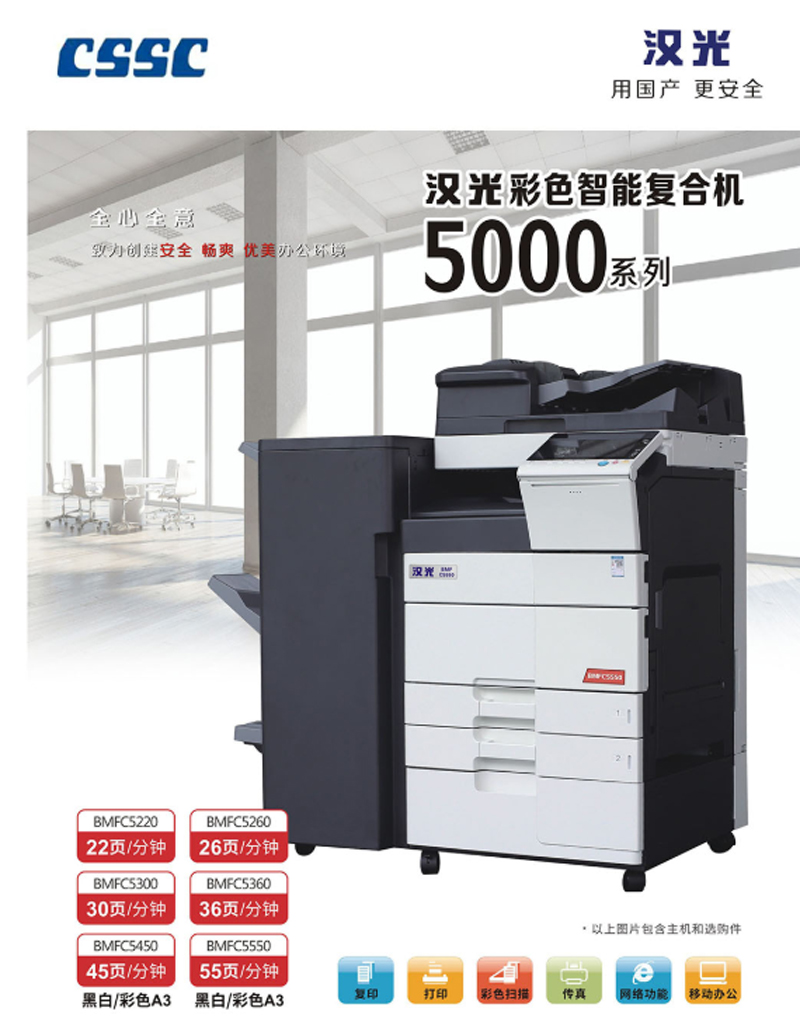 商品名称:☆汉光 BMFC5450 (双面器/双面自动输稿器/有线网络打印/1100页) 复印机 (选配纸库)