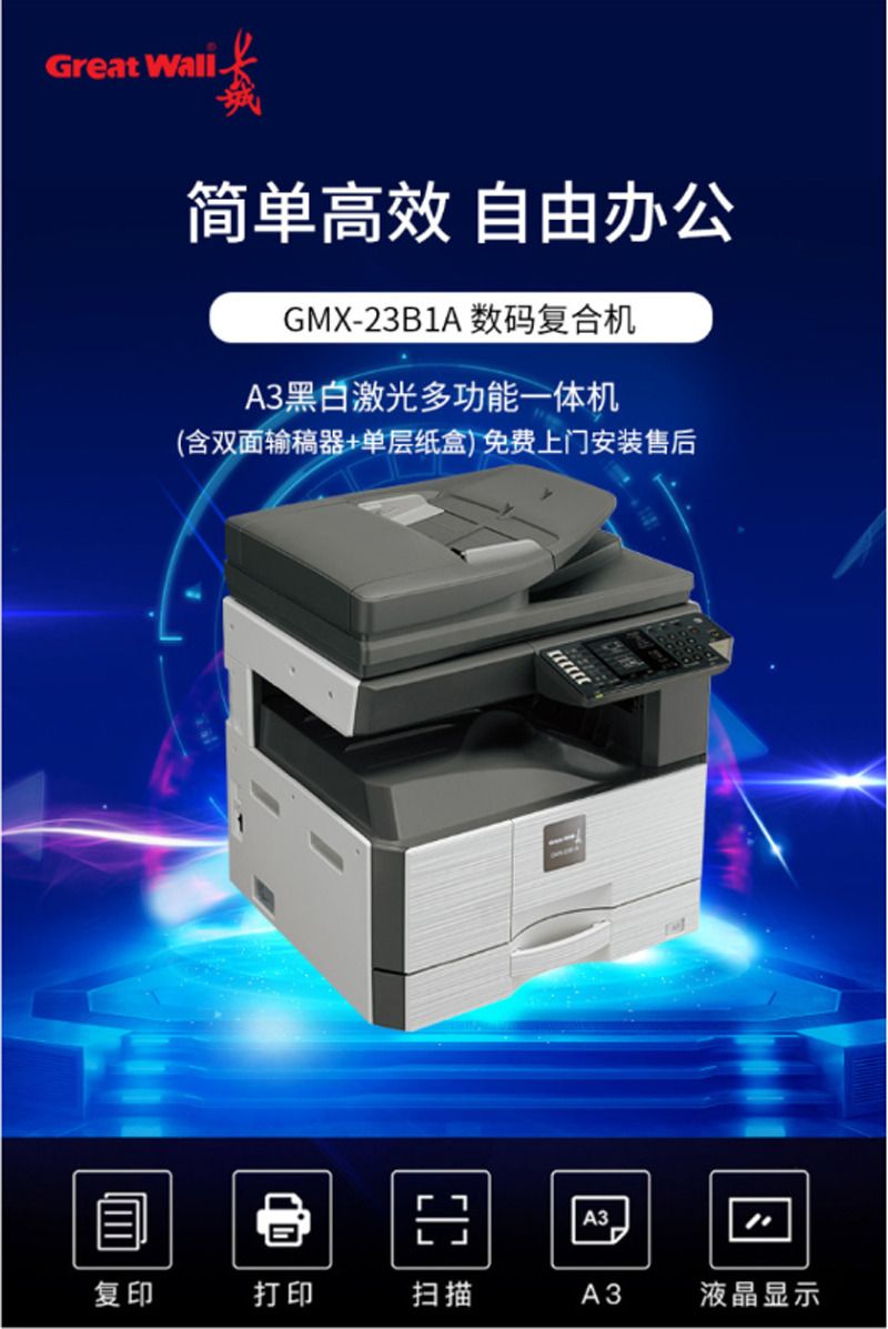 商品名称:☆长城(GREAT WALL) 23B1A (双面器/双面自动输稿器/有线网络打印/350页) 复印机