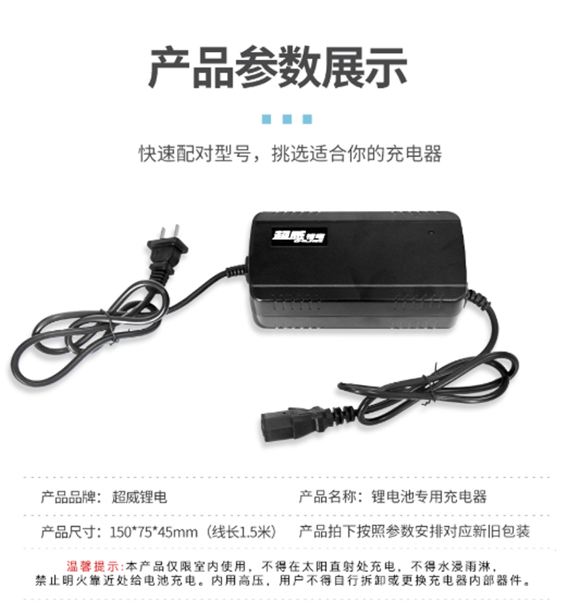 商品名称:超威 72V3A电动车锂电池快速充电器电瓶车充电器20串锂电池专用84V3A输出电压电流 品字头