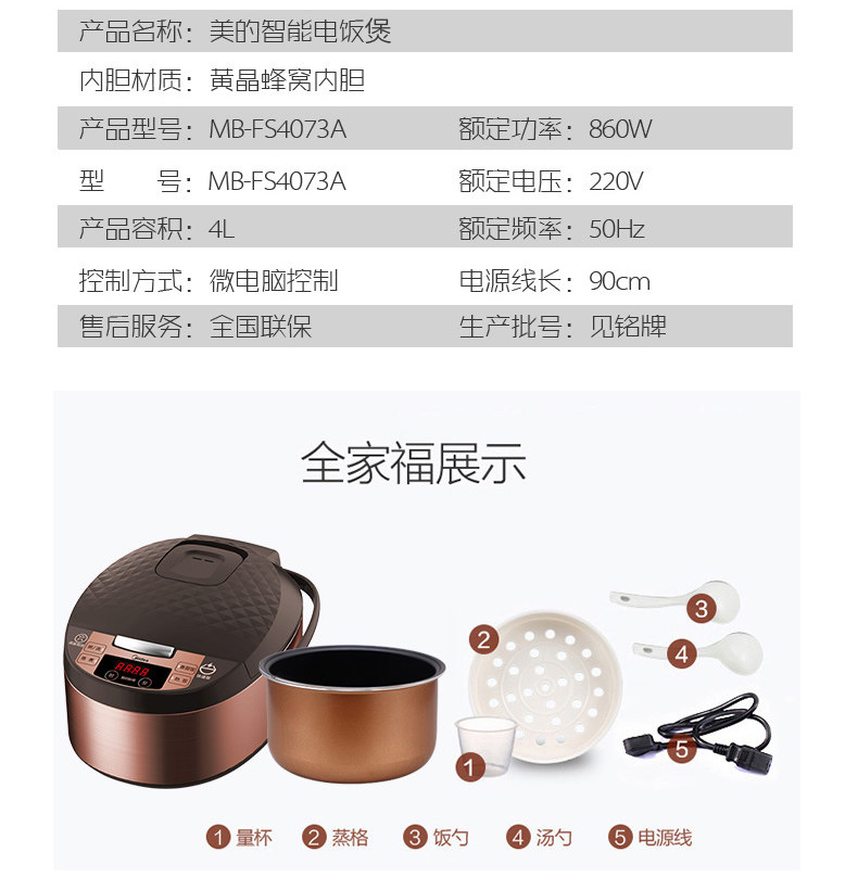 商品名称:美的/Midea 电饭煲 FS4073A