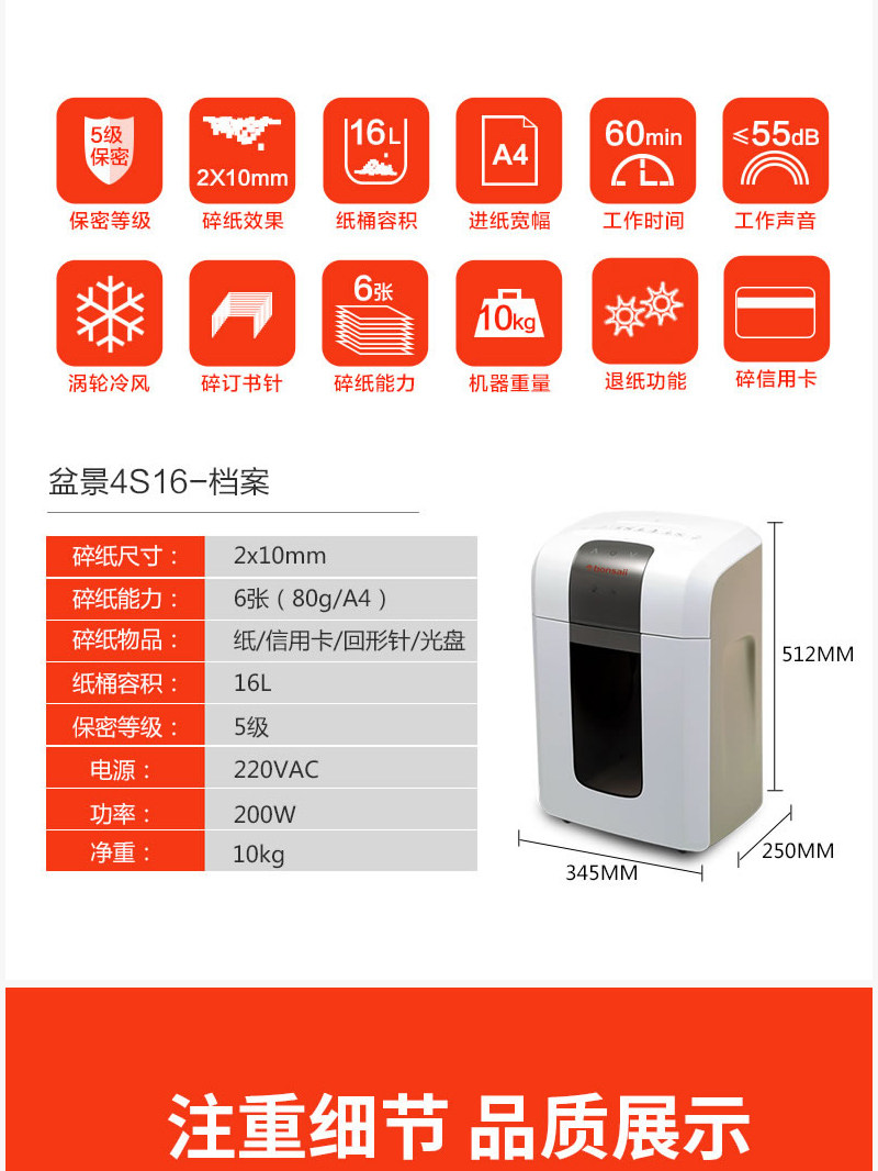 ☆盆景(BONSAII) 4S16 (40×40MM) 碎纸机