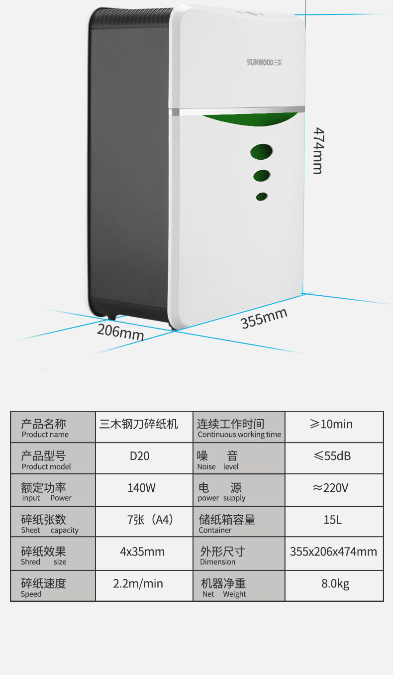 ☆三木(SUNWOOD) D20 (4×35MM) 碎纸机