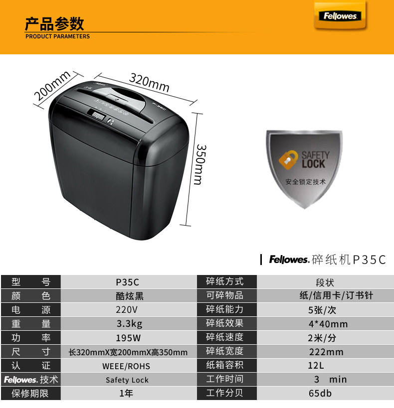 商品名称:☆范罗士(FELLOWES) P35C (4×40MM) 碎纸机
