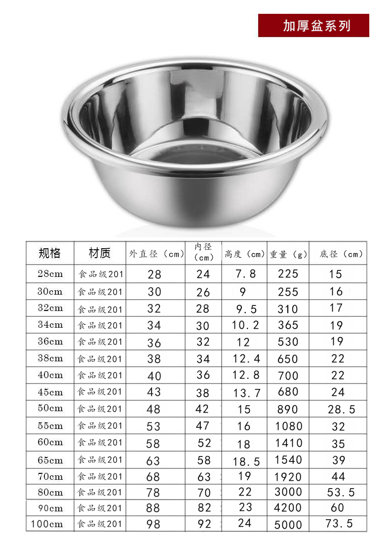 商品名称:国产 304不锈钢60CM盆