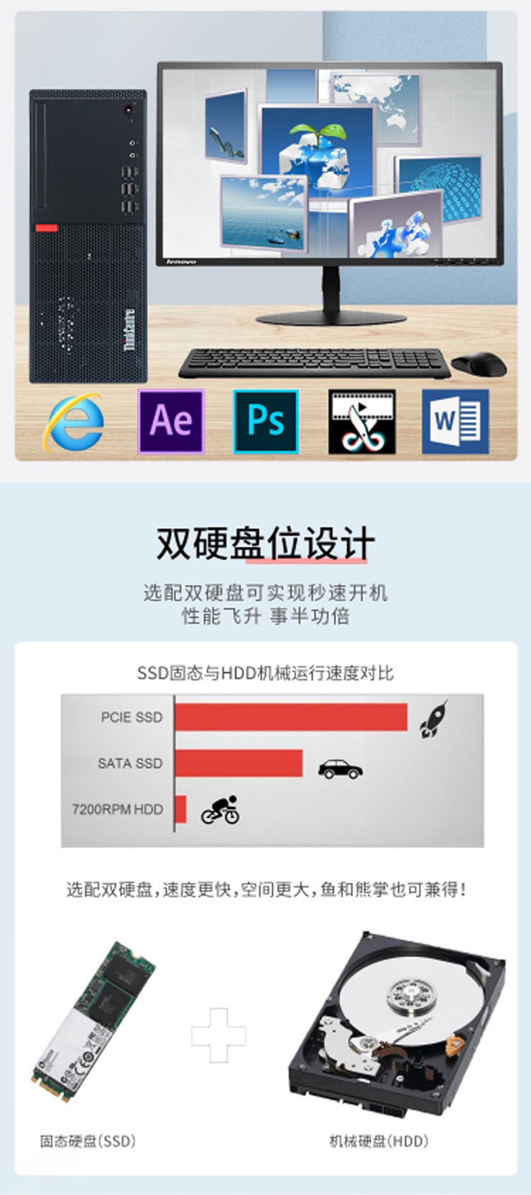 商品名称:联想 台式电脑 I5-9400(8G 1T+128G 19.5英寸显示器)
