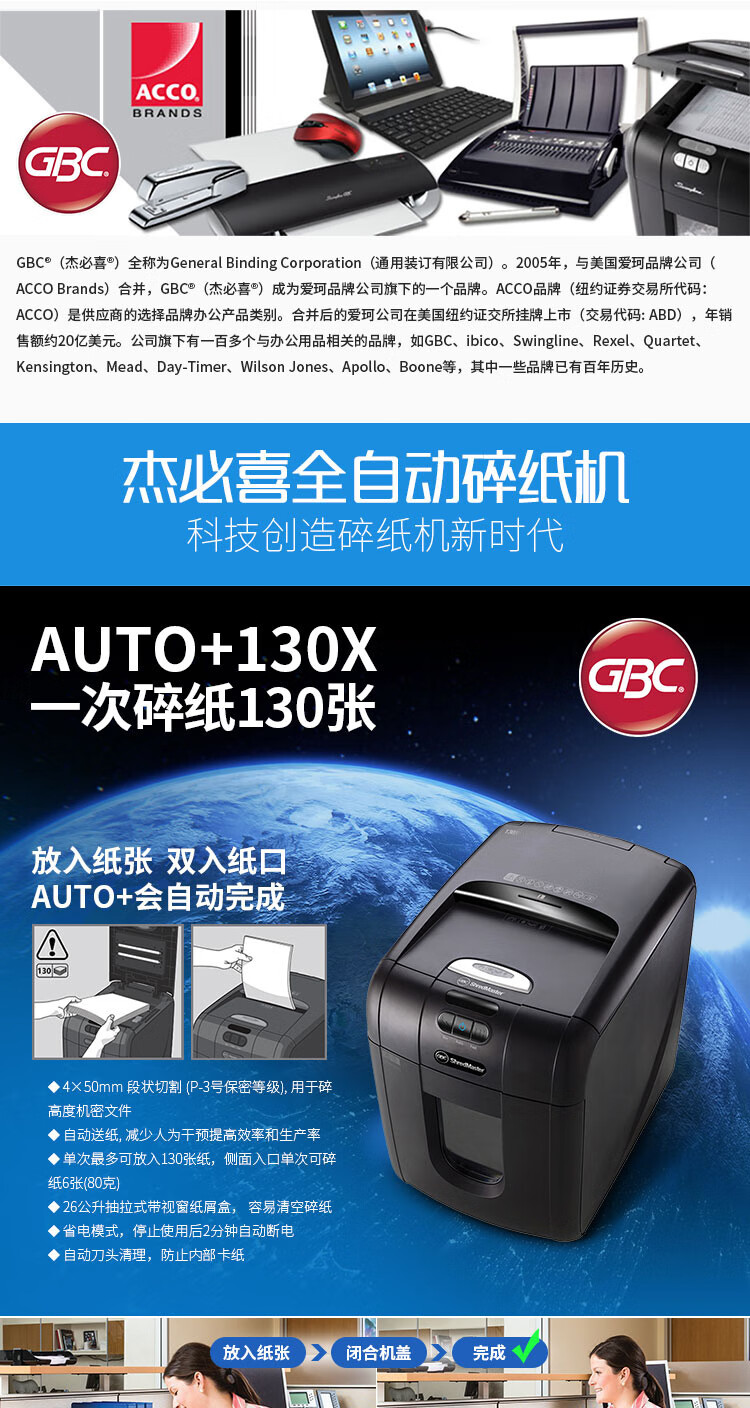 商品名称:☆杰必喜(GBC) AUTO+130X (4×50MM) 碎纸机
