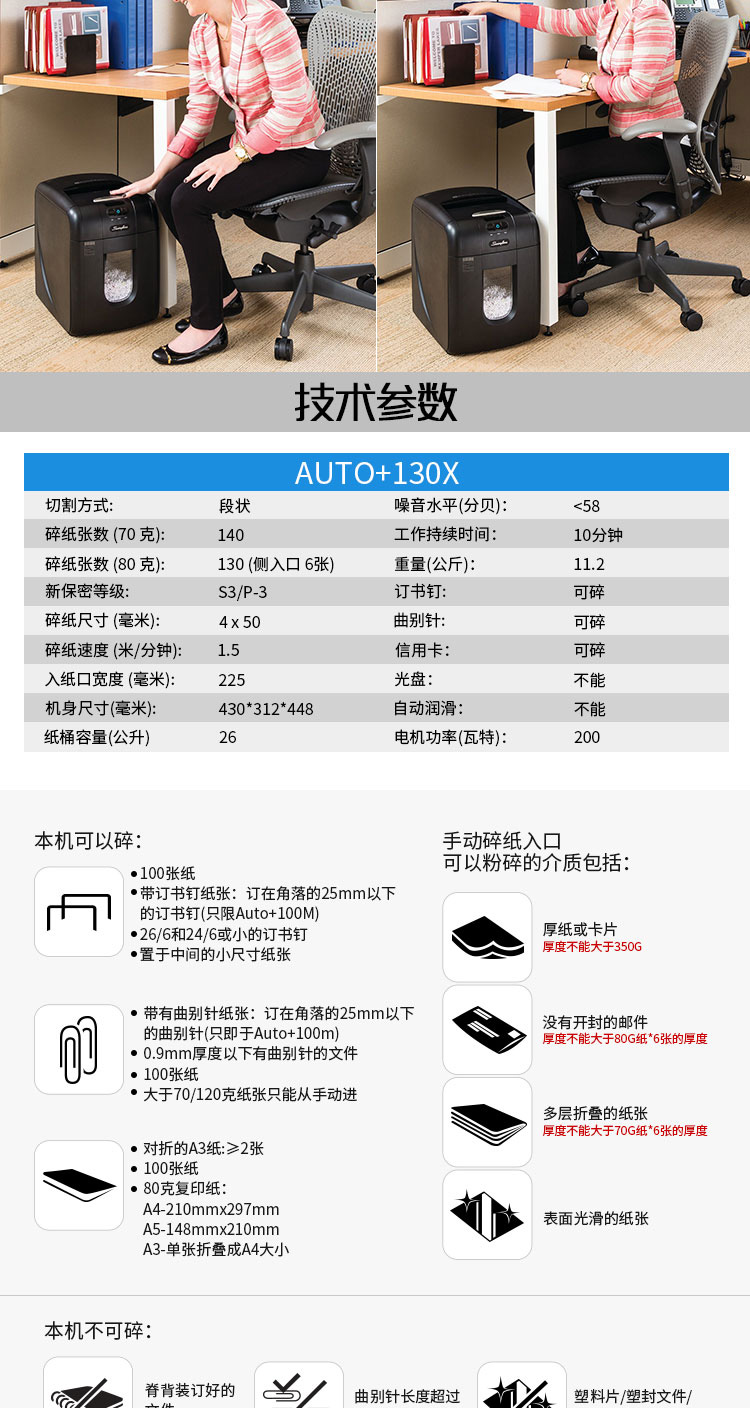 ☆杰必喜(GBC) AUTO+130X (4×50MM) 碎纸机