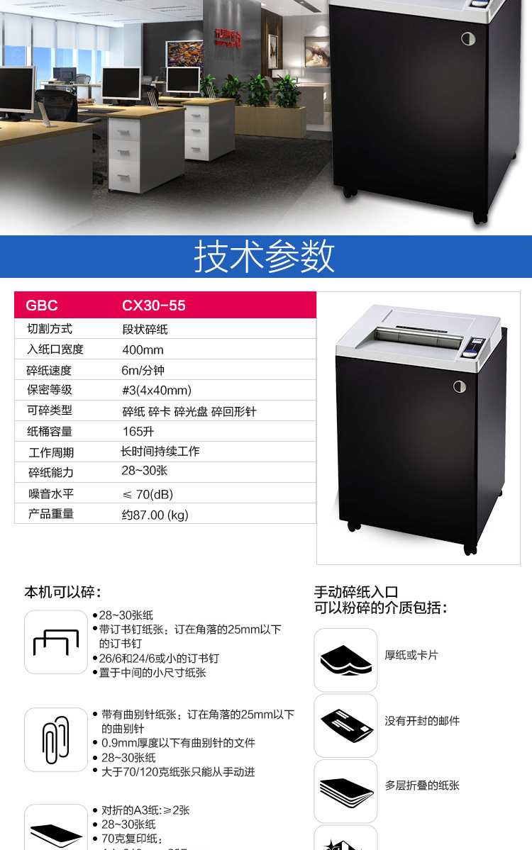 商品名称:☆杰必喜(GBC) CX30-55 (4×40MM) 碎纸机