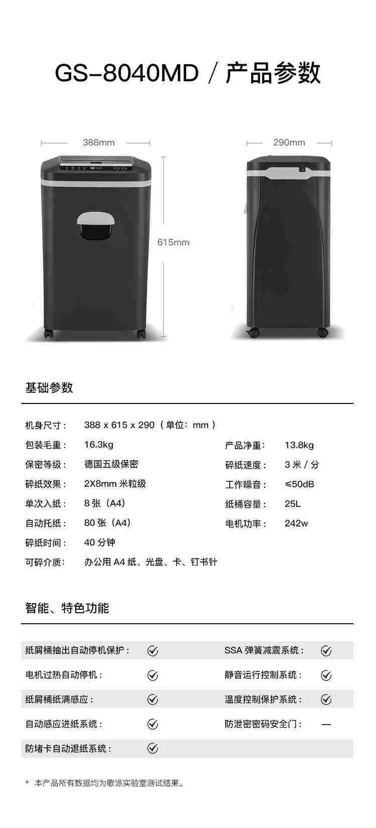 商品名称:☆歌派 GS-8040MD (2×8MM) 碎纸机