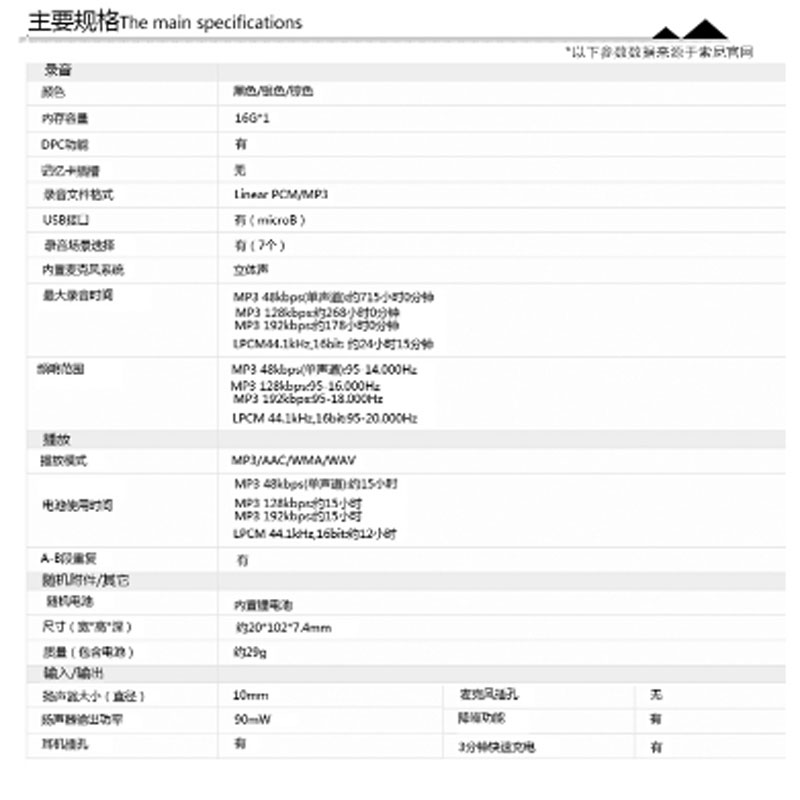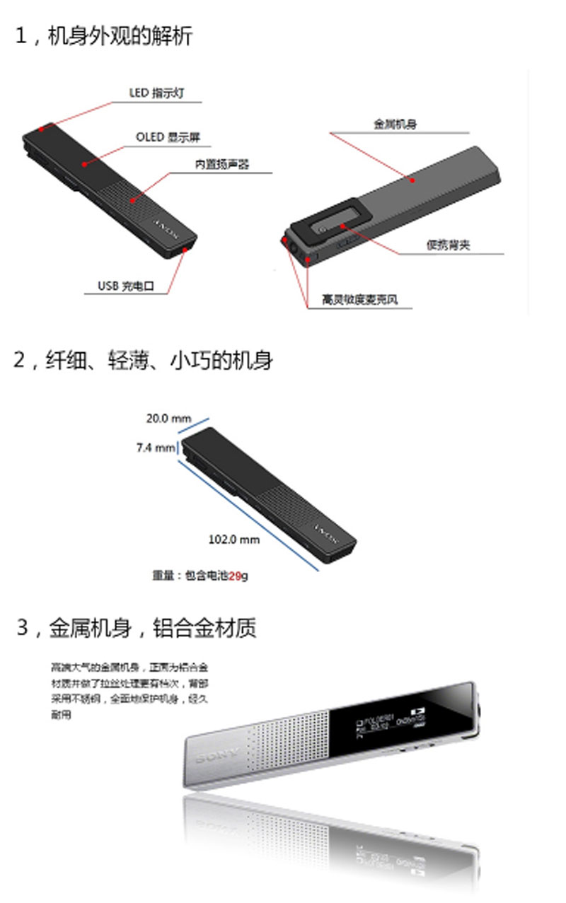商品名称:☆索尼 SONY ICD-TX650 16G 录音笔 银色