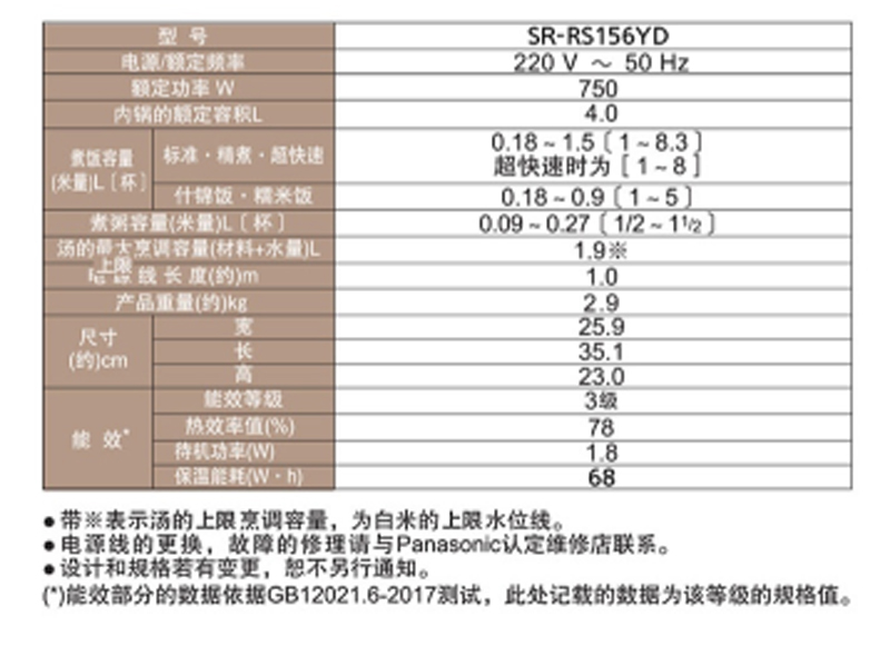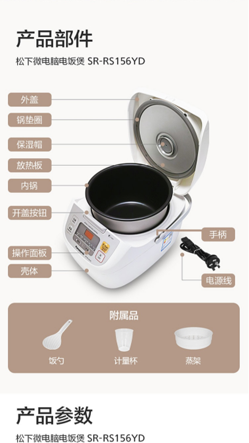 商品名称:松下 SR-RS156YD 电饭煲(单位:台)