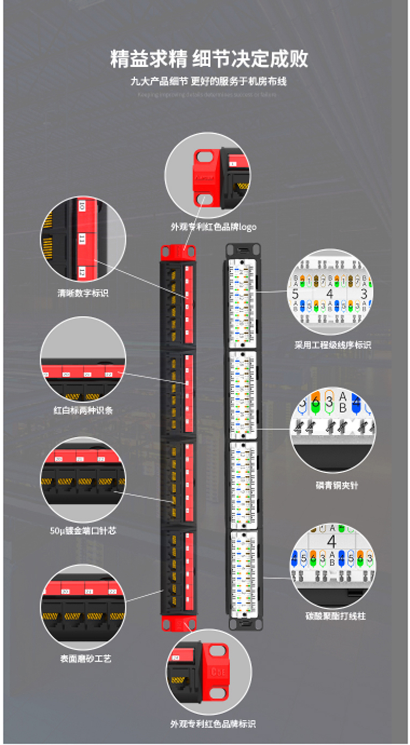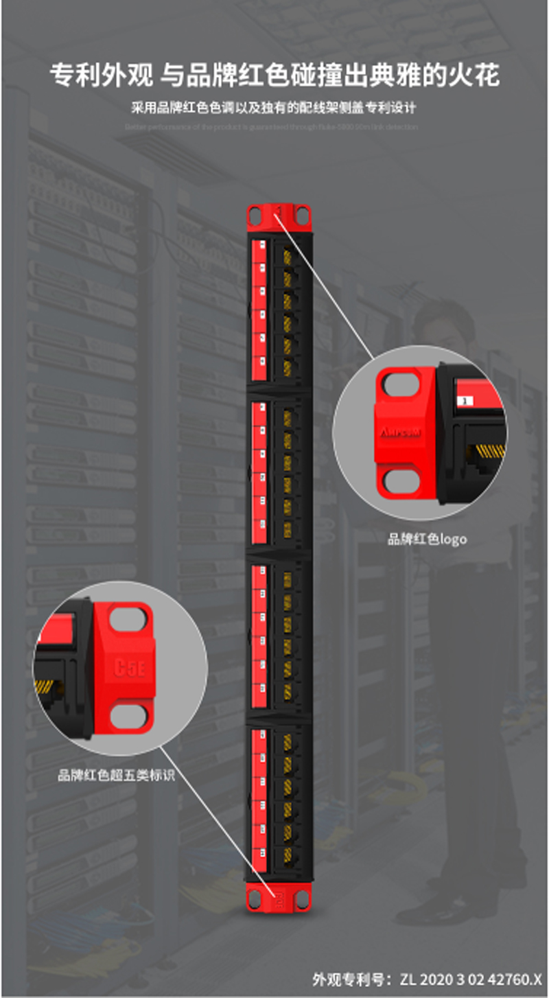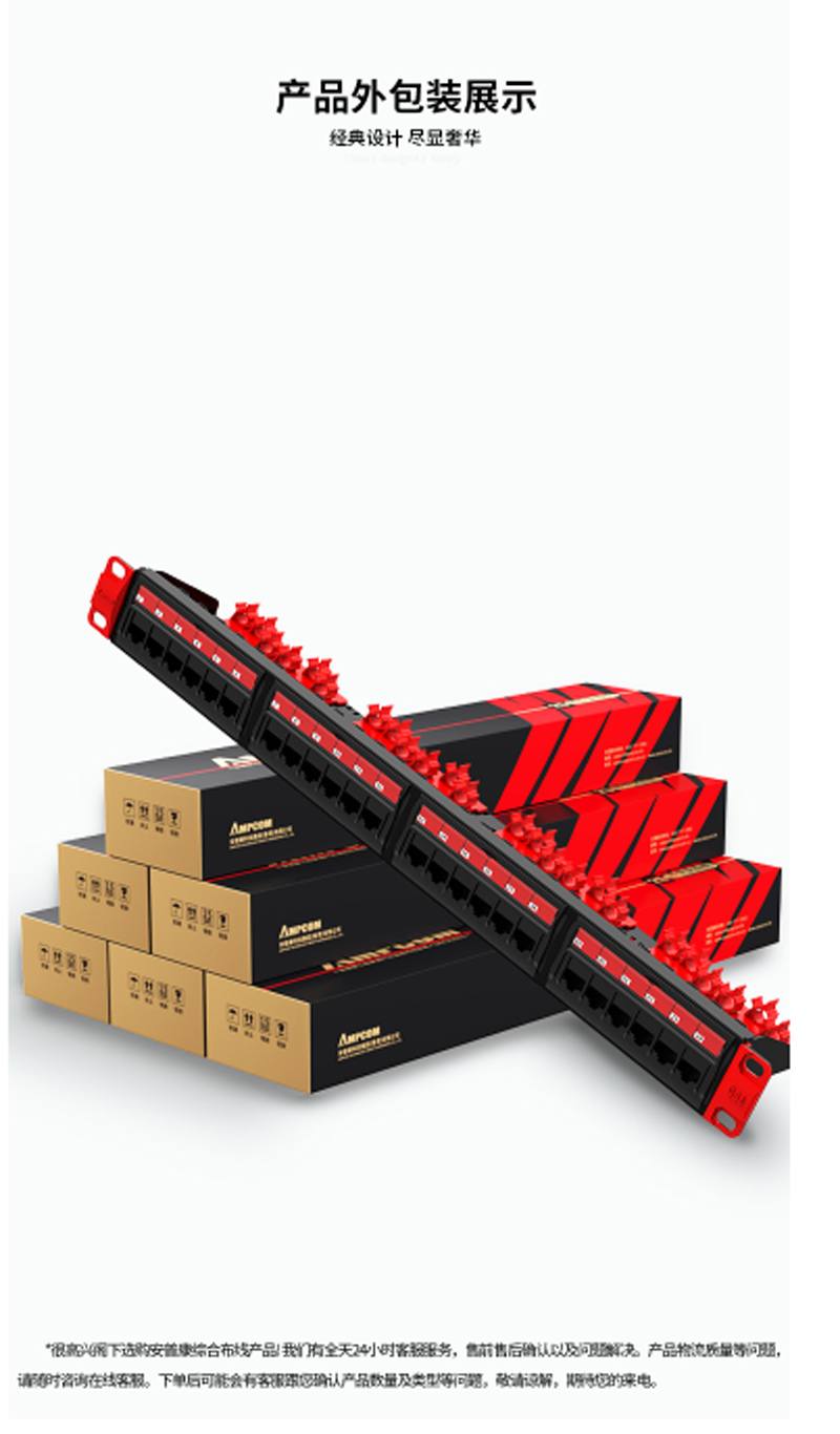 ☆安普康 AMPCOM 配线架24口超五类网络工程级50U镀金 AMCAT5E1924 2015款