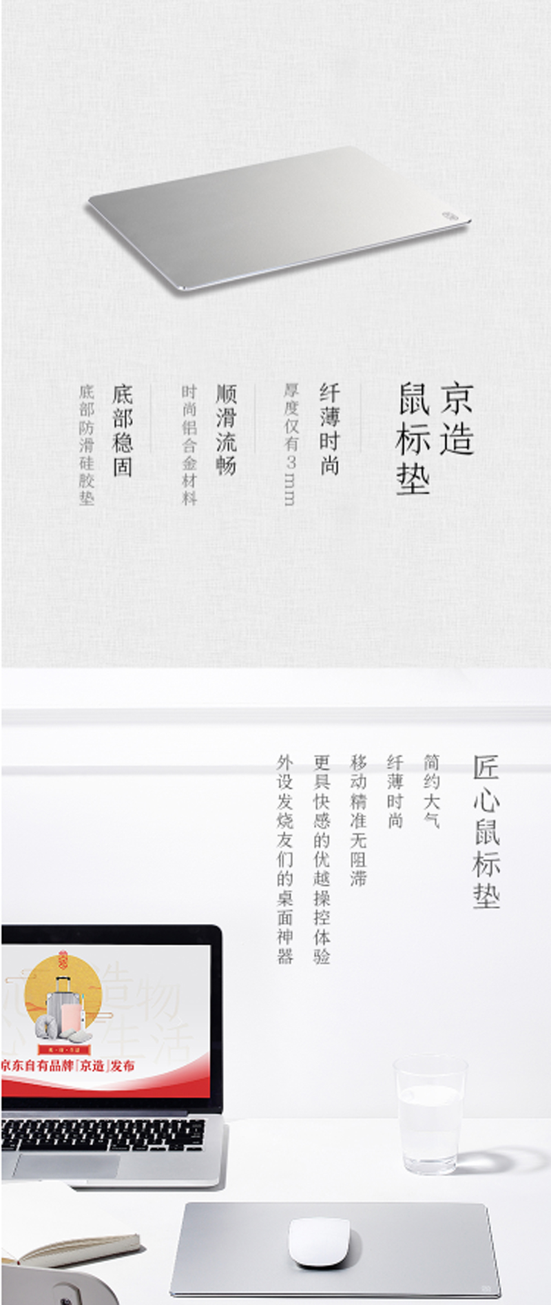 商品名称:☆京造 金属鼠标垫 大号 电脑办公游戏铝合金鼠标垫 银色