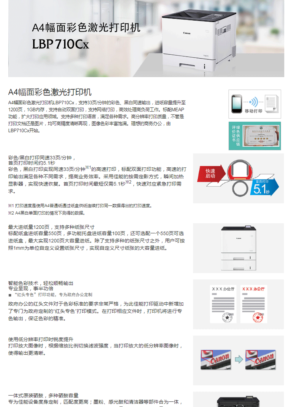 商品名称:☆佳能(CANON) LBP710CX 激光打印机 (1年)