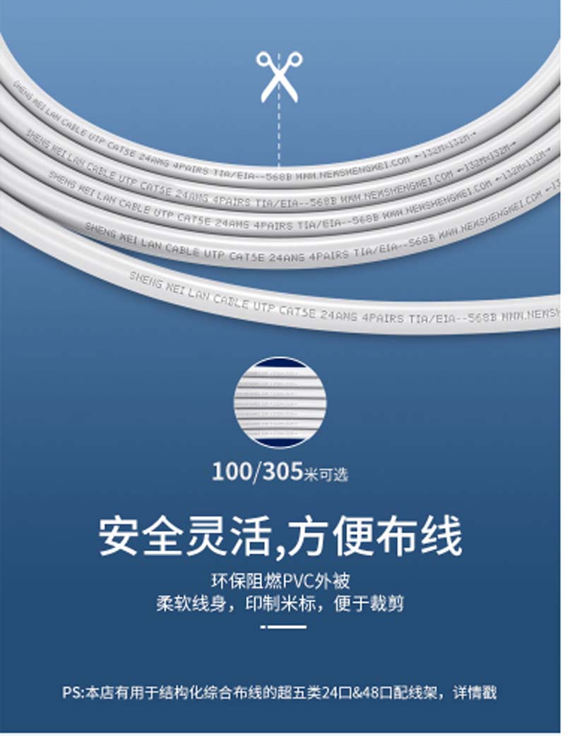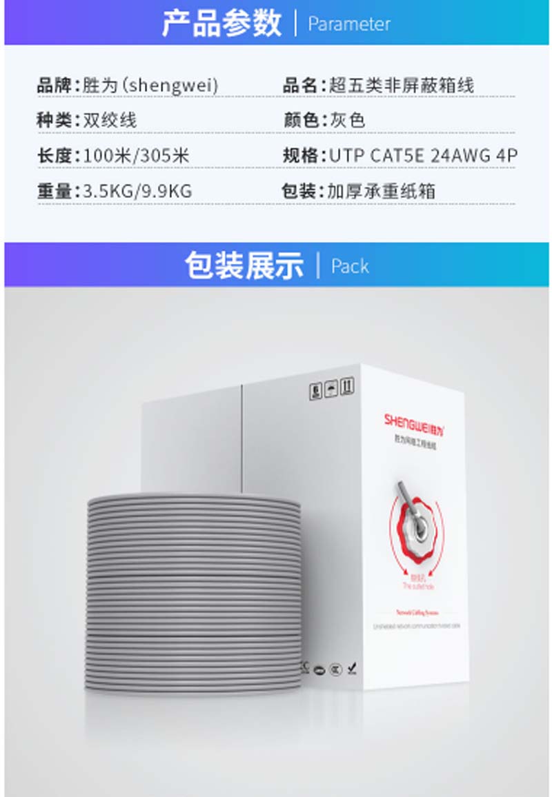 商品名称:☆胜为 SHENGWEI CLC-5100 UTP CAT5E原装超五类网线 工程布线 100米 8芯无氧铜双绞线